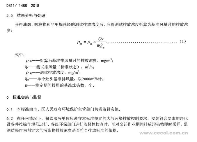 2018年北京市《餐飲業大氣污染物排放標準》(DB 11/1488-2018)